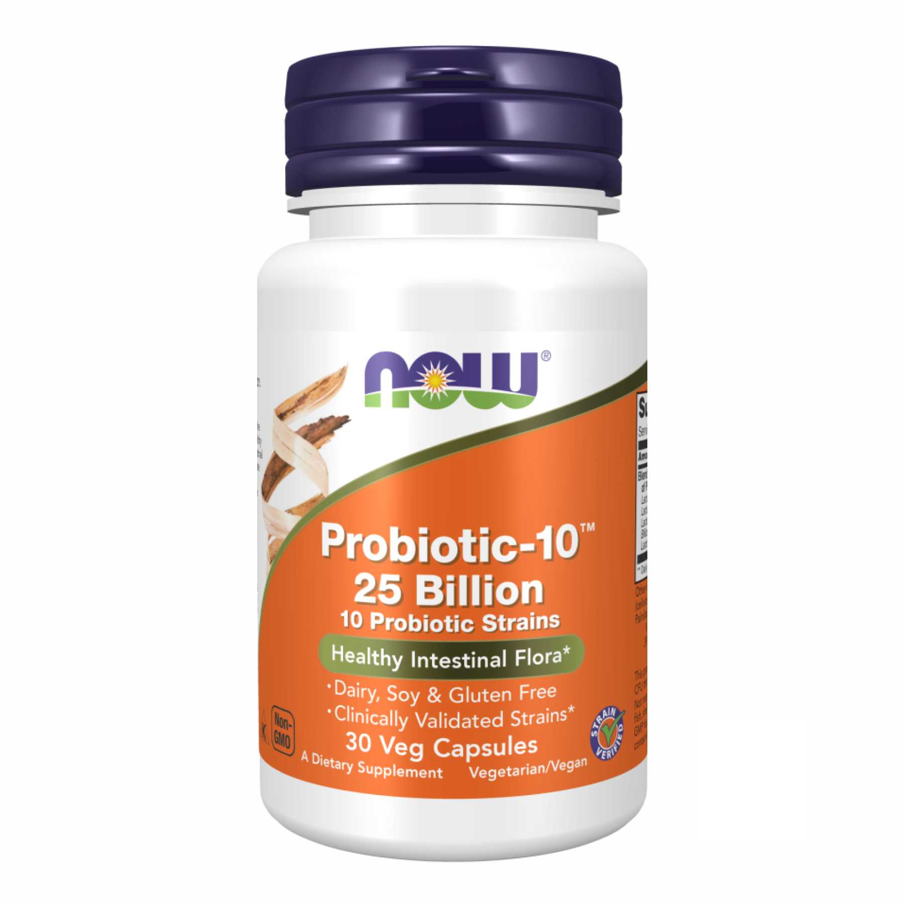 NOW® Probiotic-10™ пропонує збалансований спектр живих організмів, що складається з кислотостійких пробіотичних бактеріальних штамів, які, як відомо, природним чином колонізують шлунково-кишковий тракт людини.* Пробіотичні бактерії мають вирішальне значення для здорового травлення.* Вони допомагають підтримувати цілісність кишечника слизової оболонки, підтримують правильну перистальтику кишечника та беруть участь у процесі детоксикації.* Probiotic-10™ використовує бактеріальні штами, які були клінічно підтверджені для підтримки здорової функції імунної системи.*