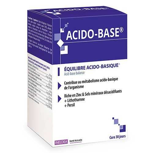 Ацидо-Бейз кислотно-лужний баланc – дієтична добавка французької лабораторії INELDEA, додаткове джерело цинку, що поліпшує кислотно-лужний метаболізм. Рекомендується при незбалансованому харчуванні, середньому регулярному показнику pH сечі менше 6,5, млявості, втоми, при кето-дієті, зловживанні білковими добавками, при стресі, курінні та алкоголі, проблемах із легенями та судинами, в літньому віці.