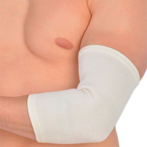 Налокітник виготовлений з м’якої еластичної бавовняної тканини, яка дихає і володіє гіпоалергенними властивостями, тому шкіра під бандажем не потіє і не запалюється.