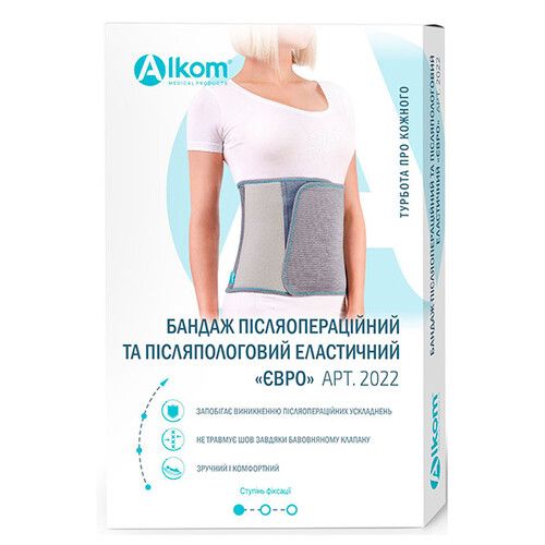 Бандаж післяопераційний та післяпологовий еластичний «Євро» Алком 2022 року зменшує біль, суттєво скорочує період реабілітації після операції чи пологів, сприяє правильному формуванню післяопераційного шва.