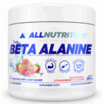 ALLNUTRITION – BETA ALANINE – це добавка на основі амінокислоти бета-аланіну з додаванням таурину та вітаміну B6 (для версії без смаку). Бета-аланін – органічна хімічна сполука з групи амінокислот. Це сильний попередник карнозину, який згладжує падіння pH, пов'язане, серед іншого, з утворенням молочної кислоти в м'язах при фізичному навантаженні. З цієї причини це відмінна добавка після тренування, яка впливає на регенерацію, знижує фізичну втому і має антикатаболічний ефект.