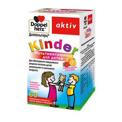 Доппельгерц Кіндер Мультівітаміни – смачні жувальні пастилки-ведмедики, мультивітамінний комплекс для дітей від 3-х років, якій містить безпечні дози вітамінів та мікроелементів для загальної імунізації дітей.