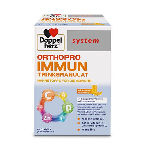Стан імунної системі людини залежить від багатьох факторів – харчування, фізичної активності, психоемоційного стану та багатьох інших. При наявності дисбалансу між всіма цими факторами страждає та імунна система. Вітамінно-мінеральний комплекс “Доппельгерц® System Ортопро Імун” містить пребіотик, антиоксиданти, вітаміни та мінерали для захисту та підтримки організму, а саме імунної системи.