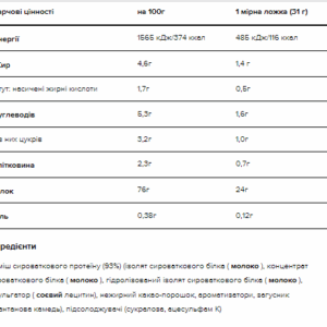 Ізолят сироваткового протеїну є однією з найчистіших форм сироваткового білка. Кожна порція продукту містить 24 г сироваткового протеїну, що швидко засвоюється, з мінімальним вмістом жиру, лактози та інших непотрібних компонентів.