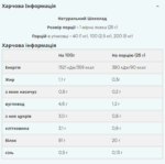 Розмір порції – 1 мірна ложка (25г) Порцій в упаковці – 40 (1кг), 100 (2.5кг), 160 (4кг) Поживна Цінність У 100г У порції (25г) 0.3 г 0.1 г з яких насичених 0.3 г 0.1 г Вуглеводів 2.5 г 0.6 г з яких цукру 2.5 г 0.6 г Білка 90 г 23 г Солі 0.50 г 0.13 г