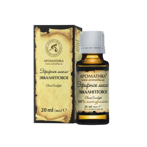 Евкаліптова ефірна олія Ароматика – це ефірна олія, отримана з листя і пагонів різних видів евкаліпта. Це одна з найбільш ефективних олій для ароматизації приміщень в несприятливий осінньо-зимовий період. Її свіжий аромат підходить для ароматизації дитячих кімнат. Це відмінний регенеруючий і дезодоруючий засіб, який допомагає очищати, відбілювати шкіру та покращує її стан, перешкоджає випадінню волосся. Це аромат продуктивного мислення і логіки. Евкаліптова олія усуває сонливість і підвищену стомлюваність, посилює концентрацію уваги та покращує розумову діяльність.