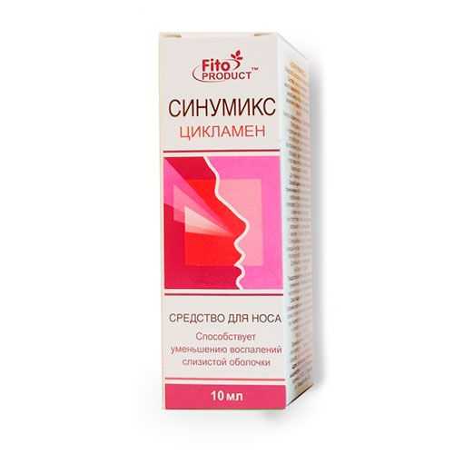 Спрей ‘Сінумікс-Цикламен’ сприяє зменшенню запалень слизової оболонки. Цикламен використовують для лікування нежиті та гаймориту.