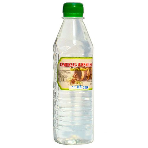 Скипидар 400 мл – прозора масляниста рідина, створена з живиці, яка збирається вручну. Застосування даного засобу стимулює кровообіг, тому широко застосовується при лікуванні поліартритів, артритів, імпотенції, м’язової атрофії, паралічів. Він надає ранозагоювальну дію, допомагає при педикульозі. Завдяки дратівному фактору хвойних фітонцидів, прискорюється і полегшується відхід мокроти при бронхітах.