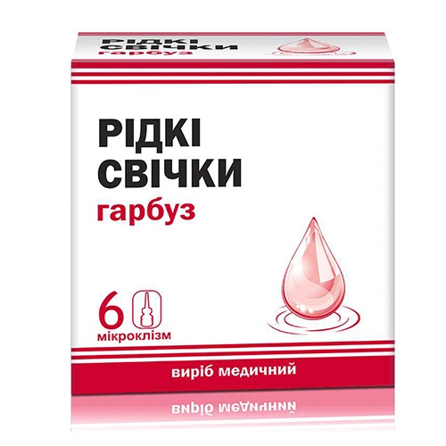 Свічки гарбуз рідкі – ефективний і безпечний засіб, рекомендований при геморої, анальних тріщинах, проктологічних, урологічних та гінекологічних захворюваннях. Вони належать до серії ректальних засобів в зручній і гігієнічній євро-формі м’якого одноразового флакона з гнучким наконечником. В одному флаконі міститься одна повноцінна доза, що дуже зручно для використання.