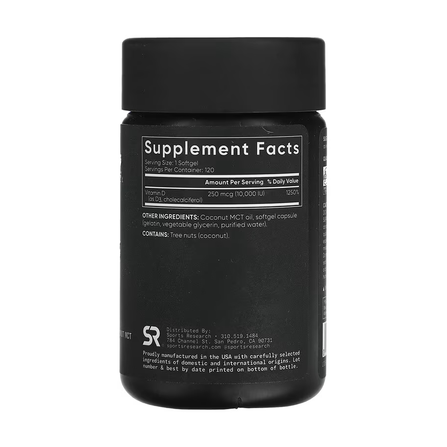 Вітамін D, відомий як «сонячний вітамін», є незамінним мікроелементом, який сприяє засвоєнню кальцію, розвитку міцних кісток і зміцненню імунної системи. Для тих, хто має обмежений доступ до сонячного світла (наприклад, взимку), або для зменшення ризиків, пов’язаних із незахищеним впливом УФА- та УФ-променів, наша формула з вітаміном D3 Sports Research® забезпечує ту саму біологічно активну форму вітаміну D, що виробляється в організмі під дією прямих сонячних променів. . Оскільки вітамін D3 найкраще приймати з жиром, ми додали кокосову олію з MCT до наших капсул, щоб ви могли отримувати більше того, що потрібно вашому організму.