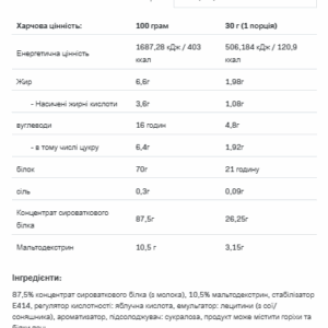 Дивовижний трикомпонентний протеїновий комплекс Protein Mix від Power Pro – це збалансована рецептура, що включає кілька типів протеїну з різною швидкістю засвоєння. Коктейль довгий час підживлює м'язи, стимулюючи їх зростання. За рахунок великої кількості амінокислот протеїн відразу ж засвоюється, а гідролізат колагену підтримує кісткову тканину, м'язи, а також хрящову тканину, покращує зовнішній вигляд шкіри та сполучних тканин. Казеїн пригнічує почуття голоду та дозволяє зберегти нарощену м'язову масу. Такий гармонійний склад забезпечує швидке та легке засвоєння, що відразу ж позитивно позначається на витривалості, зростанні м'язів, відновленні після інтенсивних занять. Вітамінний комплекс посилює дію всіх компонентів протеїну. Урсолова кислота дозволяє запобігти старінню та атрофії м'язів. Лецитин прискорює процес засвоєння амінокислот, а вітаміни групи Е, В, РР та С покращують імунітет, зменшують рівень цукру, а також показник холестерину, сприяють виділенню більшої кількості енергії. Protein Mix можна пити як у проміжках між їжею, так і на ніч, адже в ньому немає кофеїну. Переваги Protein Mix: Поєднання кількох типів білка з різною швидкістю засвоюваності; Ідеальна формула, що сприяє зростанню м'язів; Ряд вітамінів; Багатокомпонентне підживлення для м'язової тканини; Приємний смак. Протеїн створений спеціально для: Активного зростання м'язової маси та її збереження; Запобігання катаболічним процесам у м'язах; Швидке відновлення сил після інтенсивних занять; збільшення витривалості; Зниження почуття голоду та відмінного проходження травних процесів; Запобігання атрофії та передчасному старінню м'язів.