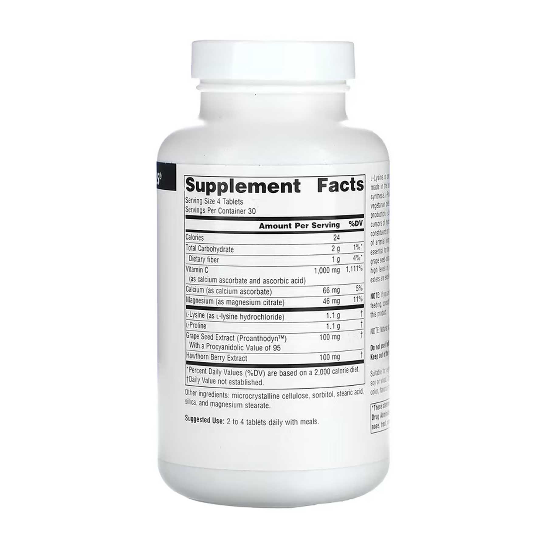 L-лізин є однією з 9 незамінних амінокислот, які виробляються в організмі. Це основна сировина для синтезу карнітину. L-пролін може вироблятися в організмі, але низькобілкові та вегетаріанські дієти не сприяють оптимальному продукуванню L-проліну. Амінокислоти L-лізин і L-пролін є попередниками гідроксилізину (HL) та гідроксипроліну (HP), двох складових колагену. Колаген є важливим компонентом артеріальних стінок. Вітамін С, сильний антиоксидант, також важливий для виробництва колагену. Екстракт ягід глоду та виноградних кісточок є потужними природними антиоксидантами завдяки високому рівню проантоціанідину. Ефіри проантоціанідину чудово поглинають вільні радикали.
