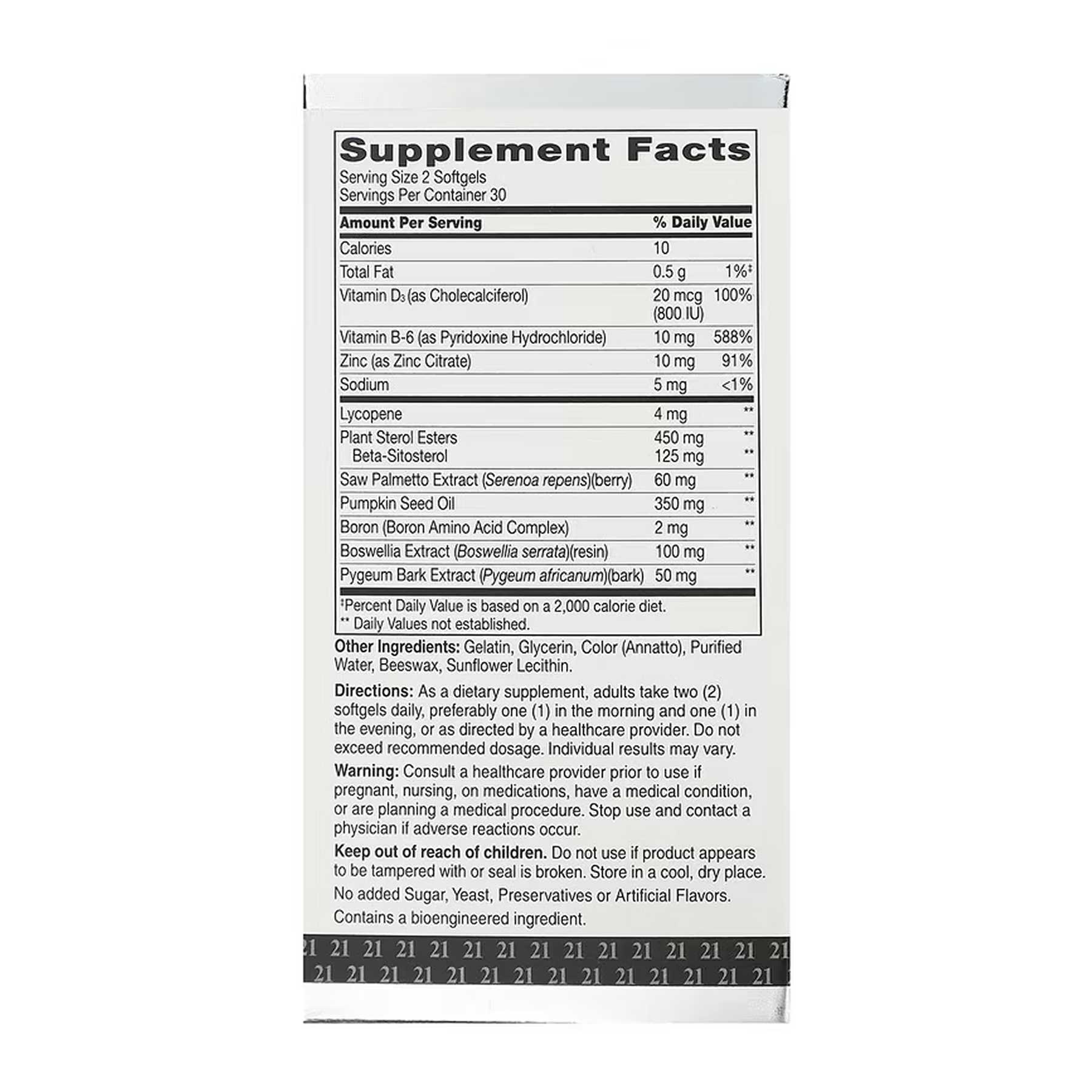 Добавка 21st Century® для здоров’я простати забезпечує підтримку нормальної роботи простати завдяки вживанню лише 2 капсул на день.