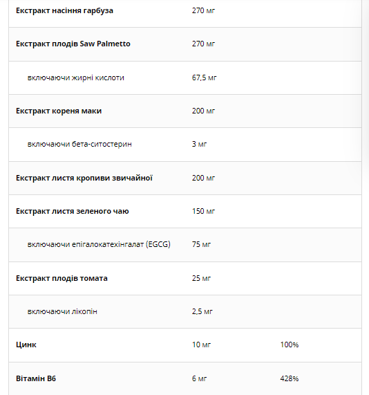Він містить цілих 6 натуральних інгредієнтів, які можуть допомогти полегшити симптоми простати, такі як часте сечовипускання, дискомфорт, біль і проблеми з сечовипусканням.