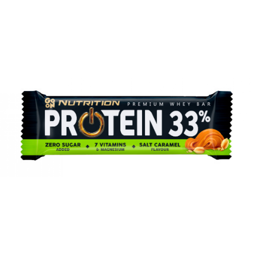 Протеїновий бар PROTEIN 33% – це чудовий бар солоних карамелів з ароматом ванілі. Він забезпечує хорошу частку білка та 7 вітамінів, важливих для фізично активних людей. Ізолят молочного білка MPI та концентрат сироваткового білка WPC 80 утворюють ідеально підібрану композицію – цілих 33% молочного білка, що сприяє зростанню та підтримці м'язової маси та здорових кісток*. Магній, що міститься в барах, допомагає підтримувати баланс електроліту, правильну роботу м'язів та сприяє зменшенню втоми та втоми*.