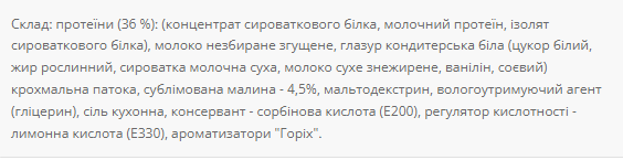 Завдяки високому вмісту білка, цей батончик стане ідеальним перекушуванням для тих, хто прагне підтримувати своє здоров'я та форму! Протеїн – один батончик містить 21,6 г білка. Білки беруть участь у будівництві Ваших м'язів.