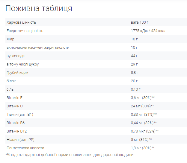 джерело 7 вітамінів: C, E, ніацину, тіаміну пантотенової кислоти, В6 та В12