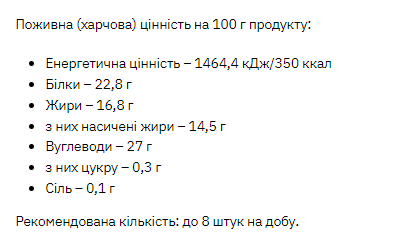 Рекомендації щодо застосування: може бути рекомендовано як додаткове джерело живлення.