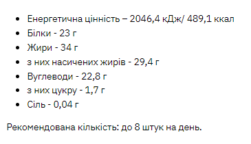 Склад: натуральний підсолоджувач мальтит, сироватковий протеїн, кокосова стружка, кокосова олія, яєчний порошок, розпушувач (пірофосфат натрію кислий Е450, бікарбонат натрію), консервант: сорбінова кислота.