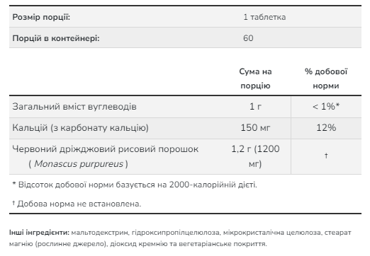 Red Yeast Rice Extract 1200mg – 60 tabs
