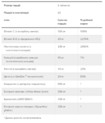 Стеаринова кислота (рослинне джерело), кроскармелоза натрію, мікрокристалічна целюлоза, гіпромелоза (целюлоза), рослинна оболонка, діоксид кремнію та стеарат магнію (рослинного походження).