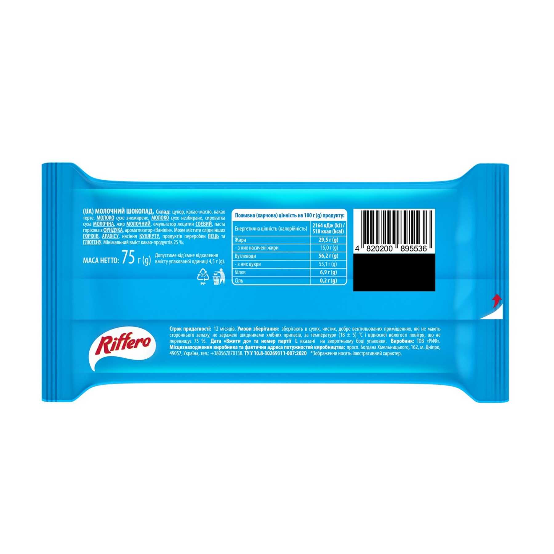 Цукор, какао масло, какао терте, молоко сухе знежирене, молоко сухе незбиране, сироватка суха молочна, жир молочний, емульгатор лецитин соєвий, паста горіхова з фундука, ароматизатор “Ванілін”. Може містити сліди інших горіхів, арахісу, насіння кунжуту, продуктів переробки яєць та глютену. Мiнiмальний вмiст какао – продуктiв 25%