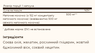 Маточне молочко є єдиною їжею, якою харчується бджолина матка у вулику, і це пояснює її неймовірне довголіття, оскільки вона може жити приблизно в 40 разів довше, ніж робочі бджоли. Маточне молочко є природним джерелом мікроелементів вітамінів, мінералів, амінокислот, білків і вуглеводів, що забезпечує поживну підтримку завдяки матінці-природі.