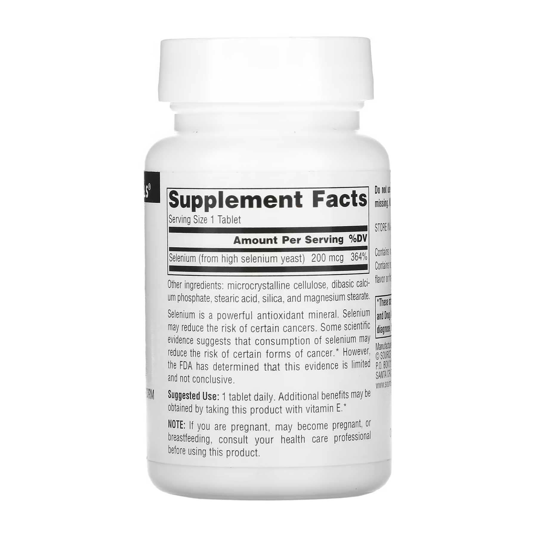 Селен дріжджовий (Selenium) 200 мкг від Source Naturals – потужний антиоксидантний мінерал, один з найважливіших елементів, що захищає організм від ракових клітин. Селен широко використовують у медицині, тому що в малих кількостях життєво необхідний людині. Основна частина селену як хімічного елемента сконцентрована у нирках, печінці, селезінці, серці та чоловічих яєчках. Крім того, селен спрямовує захисні сили організму на боротьбу з різними вірусами і зміцнює імунітет, сприяє активному виведенню токсинів, важких металів та отрут з організму; покращує структуру слизової оболонки та регенерує її; нормалізує кислотно-лужний баланс, що покращує мікрофлору кишечника та обмін речовин. Селен тримає під контролем кожну клітину організму та попереджає запальні процеси, захворювання серцево-судинної системи та ендокринні хвороби. Доведено, що селен допомагає жиророзчинним вітамінам, наприклад, таким як Е, А, Д, К – краще засвоюватися. здатний вберегти організм від передчасного старіння, підвищує сексуальну активність у чоловіків; позитивно впливає на репродуктивні функції у жінок та чоловіків, уберігає від безпліддя.