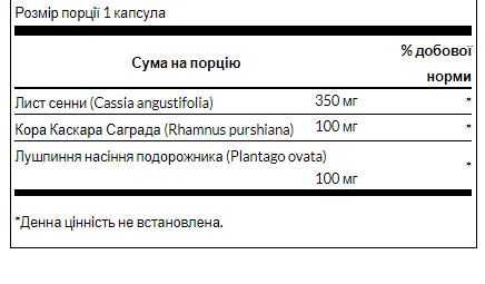 Боріться з випадковим легким здуттям живота та почуттям тяжкості за допомогою потрійної дії. Це одна з наших найкращих комбінацій для покращення здоров'я шлунково-кишкового тракту. Аркуш сенни м'яко стимулює роботу кишечника. Один з найкращих у світі джерел розчинної клітковини, лушпиння насіння подорожника є цінним поживним засобом для підтримки здоров'я та регулярності товстої кишки. Останнім доповненням до цієї зручної трав'яної формули є кора cascara sagrada, що забезпечує підтримку здорової функції кишківника та м'яку підтримку регулярної дефекації. Використовуйте цей потрійний комплекс рідко, в ті моменти, коли вам потрібна допомога регулярності!