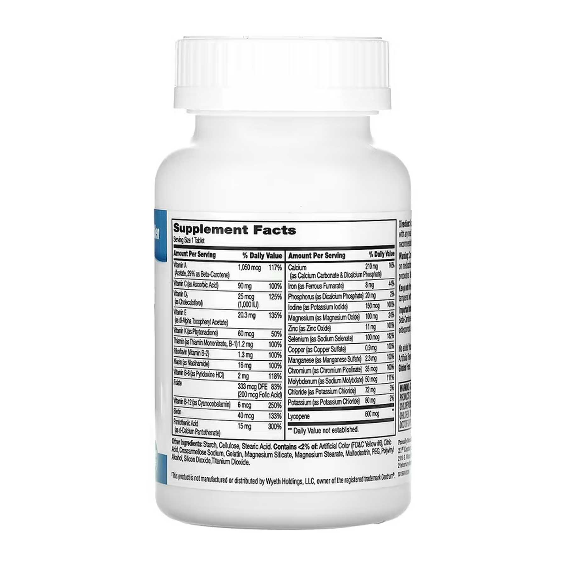 Крохмаль, целюлоза, стеаринова кислота. Містить < 2 % наступногих речовин: штучний барвник (жовтий 6 FD&C), аскорбіл пальмітат, бутилгідроксианізол, бутилгідрокситолуол, лимонна кислота, кукурудзяна олія, кроскармелоза натрію, d-альфа-токоферол, етилцелюлоза, желатин, аравійська камедь, силікат кальцію, стеарат магнію, мальтодекстрин, манітол, ПЕГ, полівініловий спирт, діоксид кремнію, алюмосилікат натрію, аскорбат натрію, сахароза, діоксид титану, рослинна олія, вода.