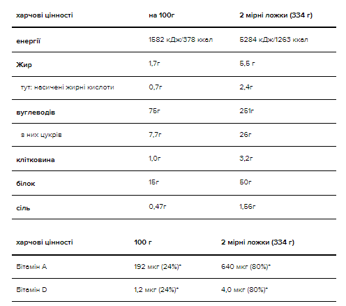 Сироватка швидко дифундує в організм, а казеїн та яєчний білок засвоюються повільно. Комбінація цих джерел білка забезпечує безперервний запас амінокислот і, таким чином, сильно стимулює зростання м'язів. Кожна порція містить 1263 калорії, 50 г білка для збільшення м'язової маси і 251 г вуглеводів, що складаються тільки з цукрів, що зустрічаються в природі. Цей гейнер збагачений моногідратом креатину до 3 г, холіном, який сприяє нормальному метаболізму ліпідів та підтримці нормальної функції печінки, інозитолом для метаболізму ліпідів, легко засвоюваним маслом МСТ та використовуваним організмом як паливо, а також 8 вітамінами (A, D, E, C , B) та 10 незамінних мінералів. Для екстремального та ефективного набору маси Serious Mass ідеально підходить для спортсменів, які займаються інтенсивним набором маси, або людей з великими труднощами при наборі ваги ектоморфного типу.