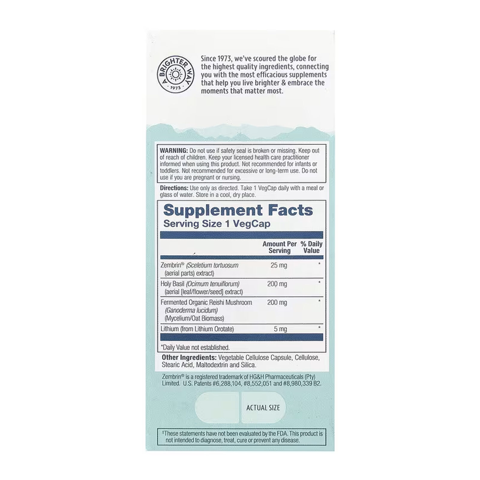 Формула ноотропного настрою Solaray SharpMind™, розроблена для сприяння спокійному настрою, емоційному благополуччю та розслабленню розуму.