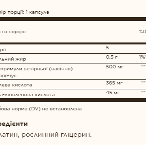 Штрихкод: 33984010437 Холодного віджиму з насіння рослини вечірньої примули… Ця олія містить ненасичені жирні кислоти GLA та лінолеву кислоту. Одна