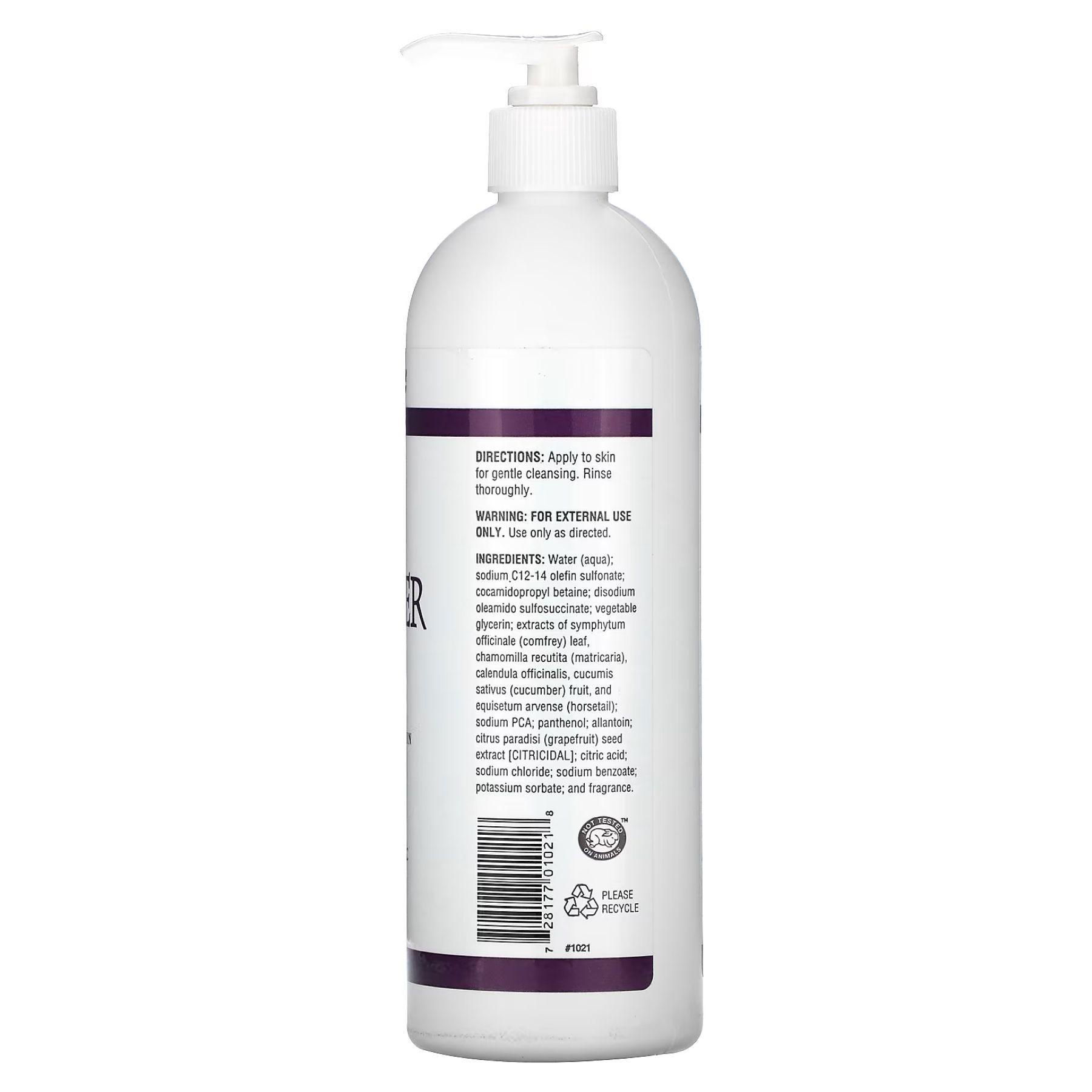 Вода (aqua), C14-16 олефін сульфонат натрія, кокамідопропілбетаїн, олеамідосульфосукцинат динатрію, рослинний гліцерин, екстракти листя живокосту (Symphytum officinale), ромашки (Chamomilla recutita), календули (Calendula officinalis), плодів огірка (Cucumis sativus), хвоща польового (Equisetum arvense), піроллідонкарбонат натрію, пантенол, алантоїн, екстракт кісточок грейпфрута (Citrus Paradisi) [Citricidal], лимонна кислота, хлорид натрію, бензоат натрію, сорбат калію і парфумерна композиція.