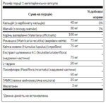 Містить корінь валеріани, порошок квіток ромашки, порошок хмелю, порошок трави шоломника, L-таурин і ГАМК.