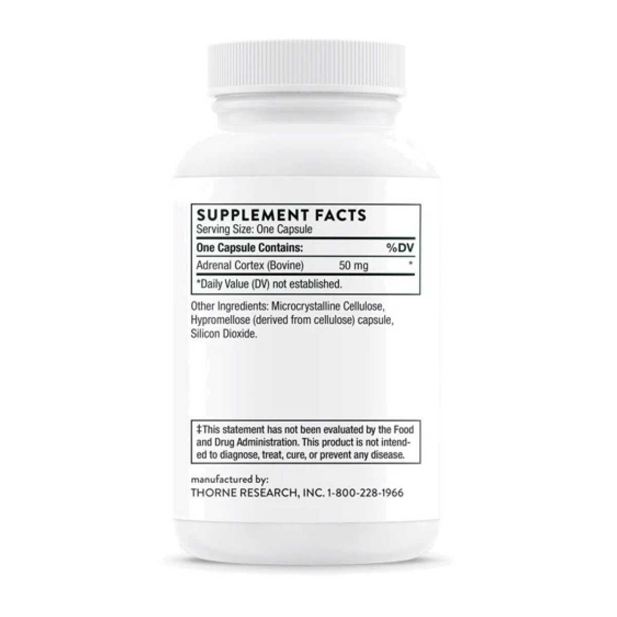 Гормони, що виробляються в корі надниркових залоз, необхідні для метаболізму глюкози, імунної функції, нормального кров'яного тиску і т.д. У сьогоднішньому світі «високого стресу» звички способу життя, які позбавляють нас адекватного відпочинку і фізичних вправ, поряд з дієтичними звичками, чреваті кофеїн і рафіновані цукри можуть з часом завдати шкоди наднирникам. Екстракти з тканини кори надниркових залоз можуть відігравати важливу роль у підтримці здорових наднирників – і допомагають підтримувати імунну функцію і стимулювати енергетичне почуття. Екстракти заліза також підтримують здоровий рівень кортизолу. Кора наднирників Thorne забезпечує екстракти тканини кори надниркових залоз для цілеспрямованої підтримки. нормальної функції надниркових залоз.