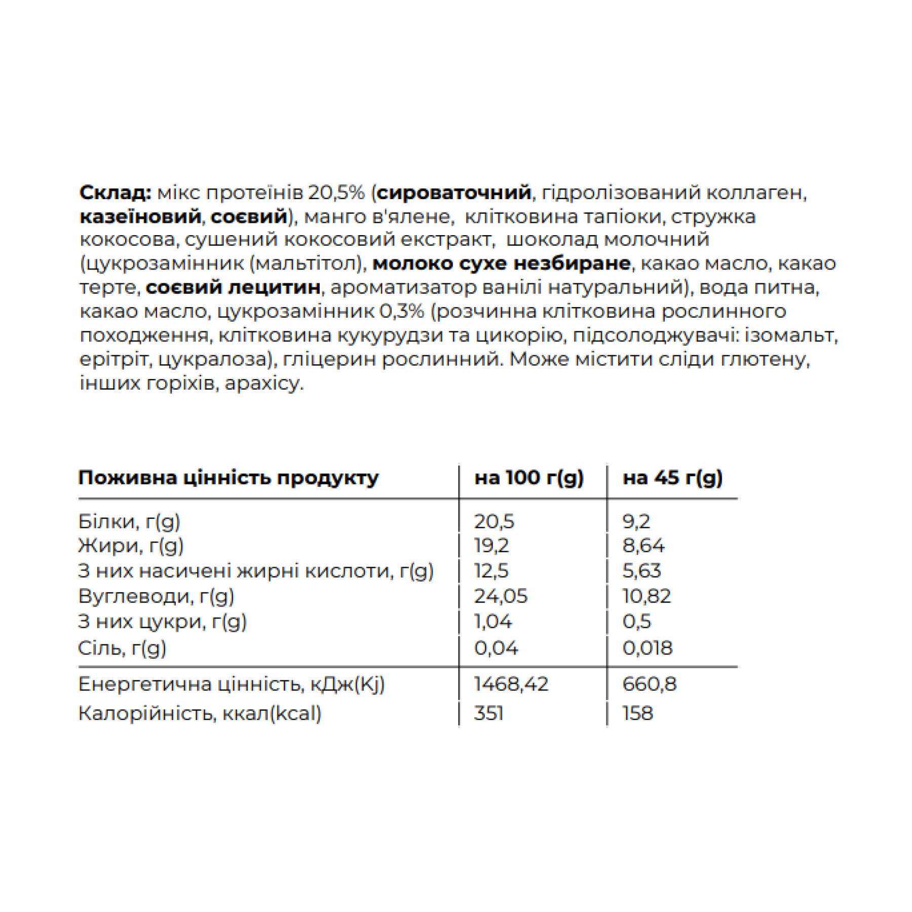 Цей протеїновий батончик стане вашим надійним супутником у повсякденному житті, забезпечуючи організм необхідними поживними речовинами та радуючи вишуканим смаком