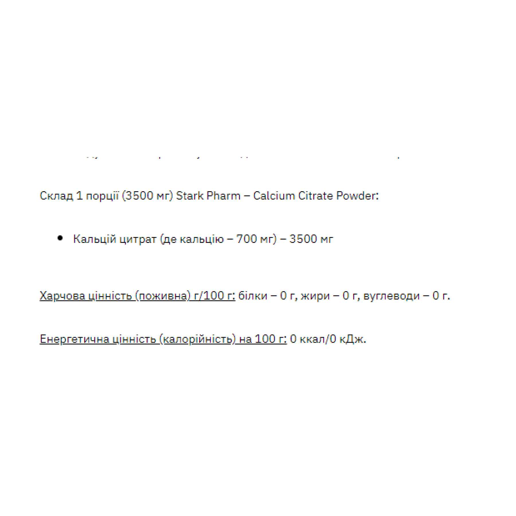 Склад 1 порції (3000 мг) Stark Pharm – Calcium Citrate Powder: