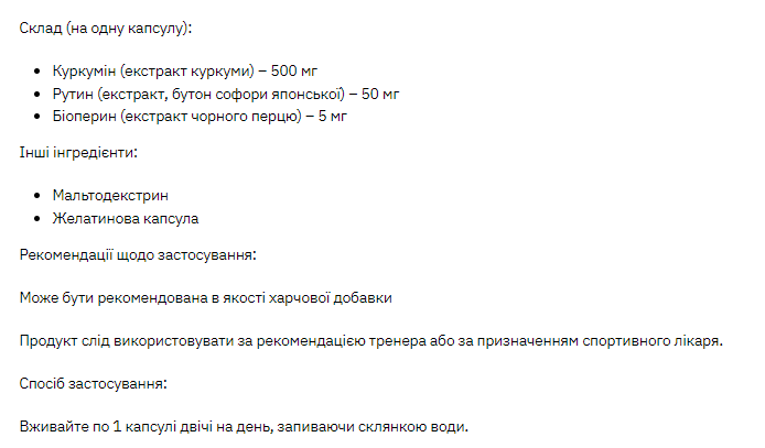 Продукт слід використовувати за рекомендацією тренера або призначення спортивного лікаря.