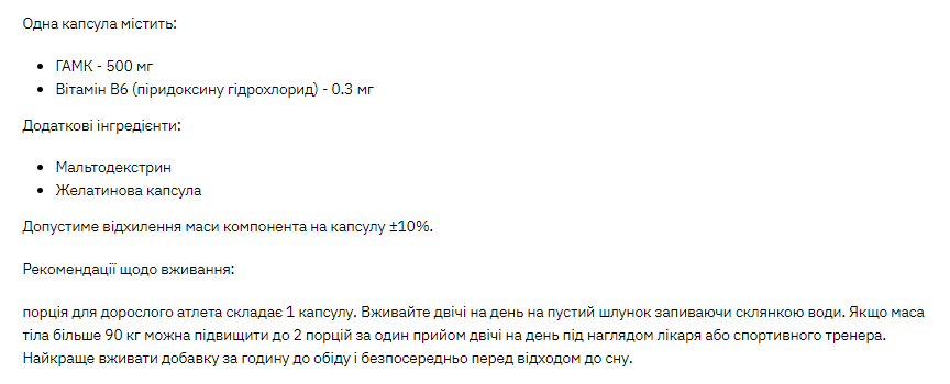 Зважаючи на слабку проникність GABA через гемато-енцефалічний бар'єр рекомендовано приймати 2000-3000 мг добавки на день, це згідно досліджень дає відчутний ефект для підвищення рівня гормону росту в 5-6 разів.