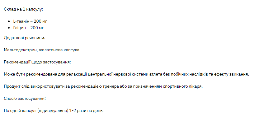 Продукт слід використовувати за рекомендацією тренера або призначення спортивного лікаря.