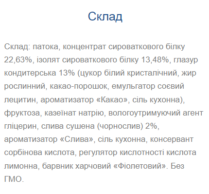 Найбільший та найкращий батончик в Україні. Цілих 28 грам високоякісного білка на 80 грам батончика. Як джерело білка використовується концентрат сироваткового білка, ізолят сироваткового білка та казеїн. Усього 21 грам вуглеводів. У складі ви не знайдете згущеного молока, мальтодекстрину та інших “не дієтичних” інгредієнтів, які так люблять використовувати багато виробників. Протеїнові батончики Monsters: зручний, швидкий та смачний спосіб отримати необхідну порцію справжнього білка та перекусити протягом дня. Поживна цінність 1 батончика (80 грам): Енергетична цінність: 274 кка Білки 28,6 г; жири 6,4 г; Вуглеводи 21 г. Склад: патока, концентрат сироваткового білка 22,63%, ізолят сироваткового білка 13,48%, фруктоза, казеїнат натрію, абрикос сушений (курага), глазур кондитерська (цукор білий кристалічний, жир рослинний, соєвий лецитин, ароматизатор “Какао”, сіль кухонна)