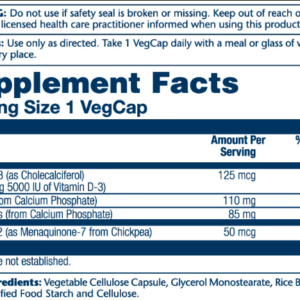 Рослинна целюлозна капсула, стеарат магнію, целюлоза, діоксид кремнію, стеаринова кислота, буферна основа (карбонат кальцію й оксид магнію).