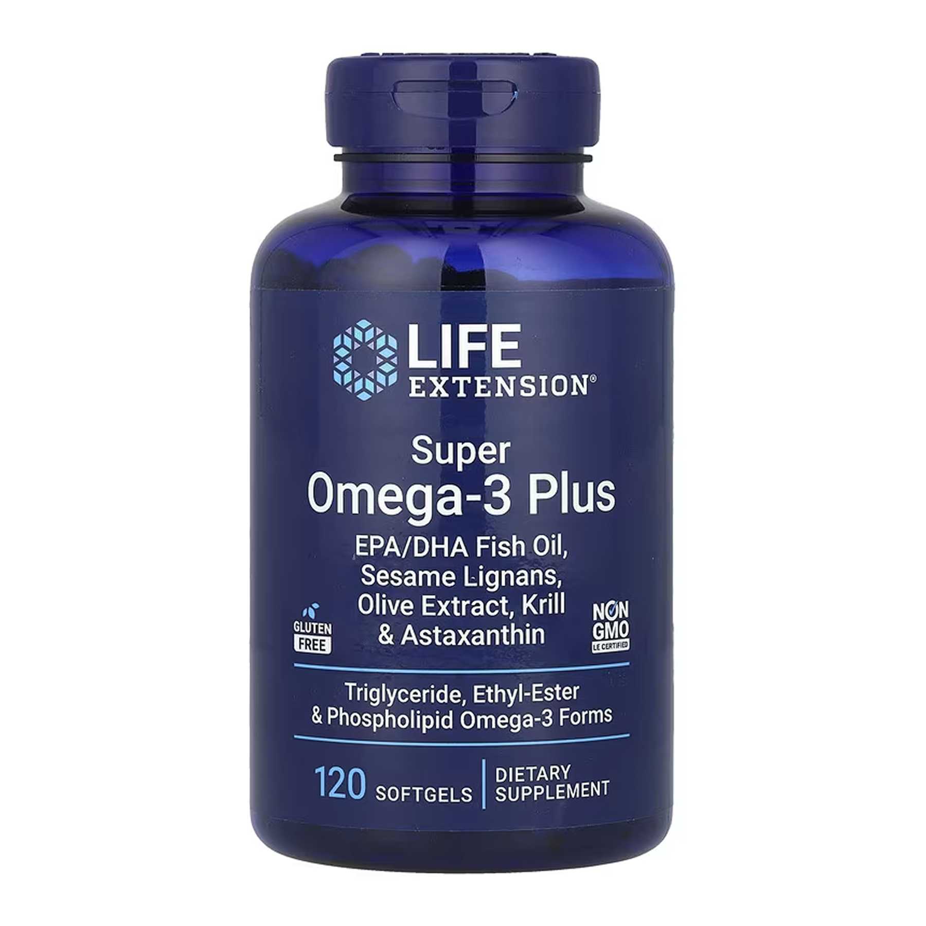 Super Omega-3 Plus EPA/DHA Fish Oil, Sesame Lignans, Olive Extract, Krill & Astaxanthin – 120 softgels