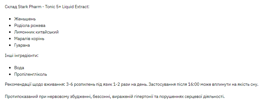 Склад Stark Pharm – Tonic 5+ Liquid Extract: