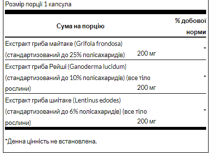 100% цільнозернові гриби шиїтаке, рейші та майтаки для імунної підтримки