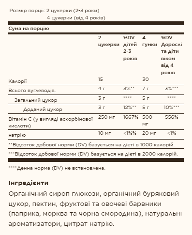 Solgar® створює харчові добавки протягом багатьох поколінь — понад 70 років. І, як і всі інші наші добавки, жувальні цукерки U-Cubes™ з вітаміном С виграють від обширної науки та знань, що лежать в основі нашої назви. Кожна порція цукерок U-Cubes™ з вітаміном C на основі тапіоки містить 500 мг на 4 цукерки вітаміну С для дітей віком від 4 років і 250 мг на 2 цукерки для дітей 2 і 3 років.