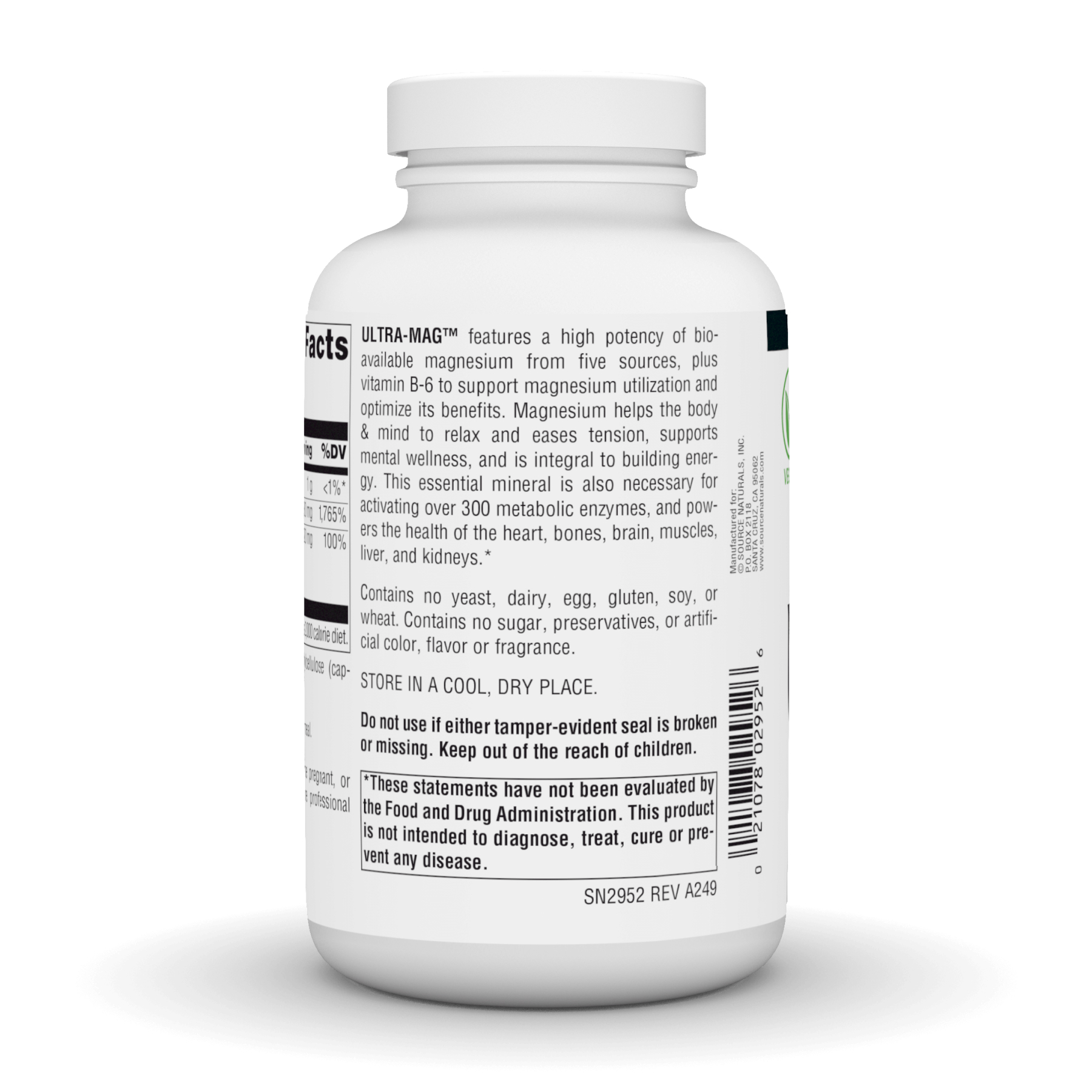 Source Naturals Ultra-Mag – це високоякісна добавка, яка містить спеціально розроблений комплекс магнію. Цей продукт містить різні форми магнію, що допомагає забезпечити організм цим важливим мікроелементом. Магній відомий своїм позитивним впливом на підтримку загального самопочуття. Продукт не містить штучних барвників, ароматизаторів або консервантів, що робить його безпечним для щоденного вживання.