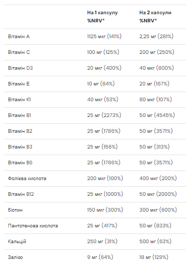 Наповнений 44 ключовими поживними речовинами та активними інгредієнтами в п’яти ефективних сумішах, рецепт поєднує 13 основних вітамінів із каротиноїдами, рослинними компонентами та нутрикосметикою.