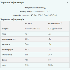 Вміст клітковини для поліпшення перистальтики кишечника.